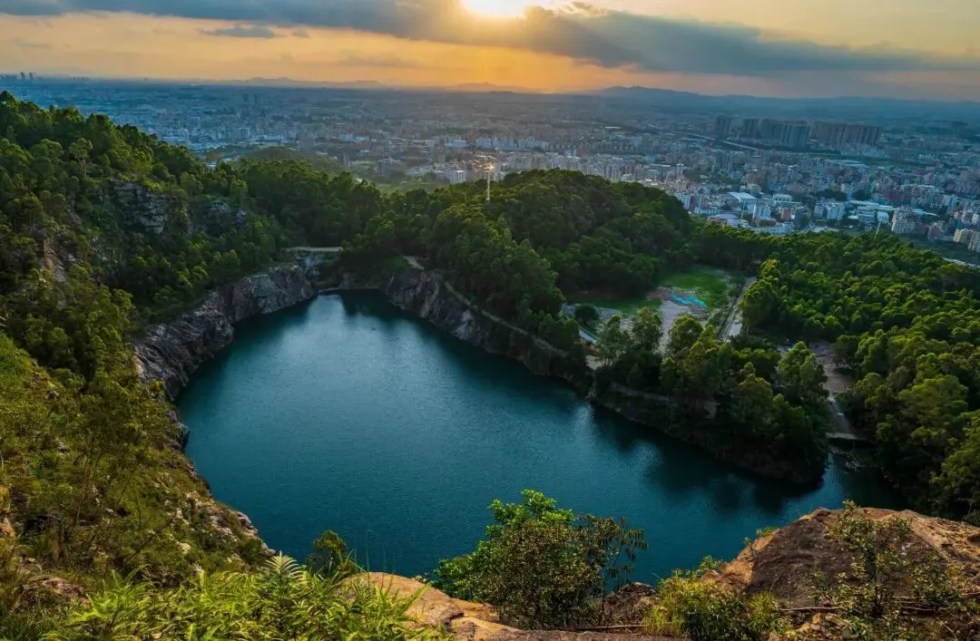 麓湖原来是采石留下的坑,后来改成湖,周边种树种花,现在看着像天生的。