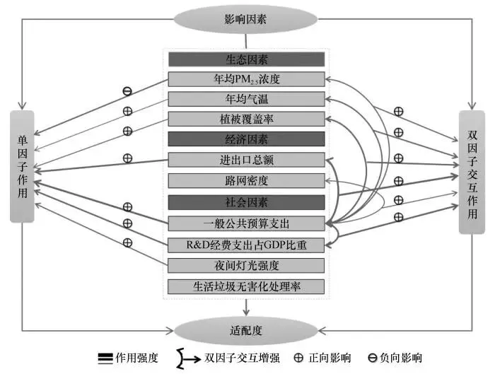 财政支出、对外贸易、创新投入、环境质量与生态条件是适配度差异的主导因子,双因子交互效应普遍强于单因子,且以增强作用为主,显示适配机制的复合性和协同性特征。