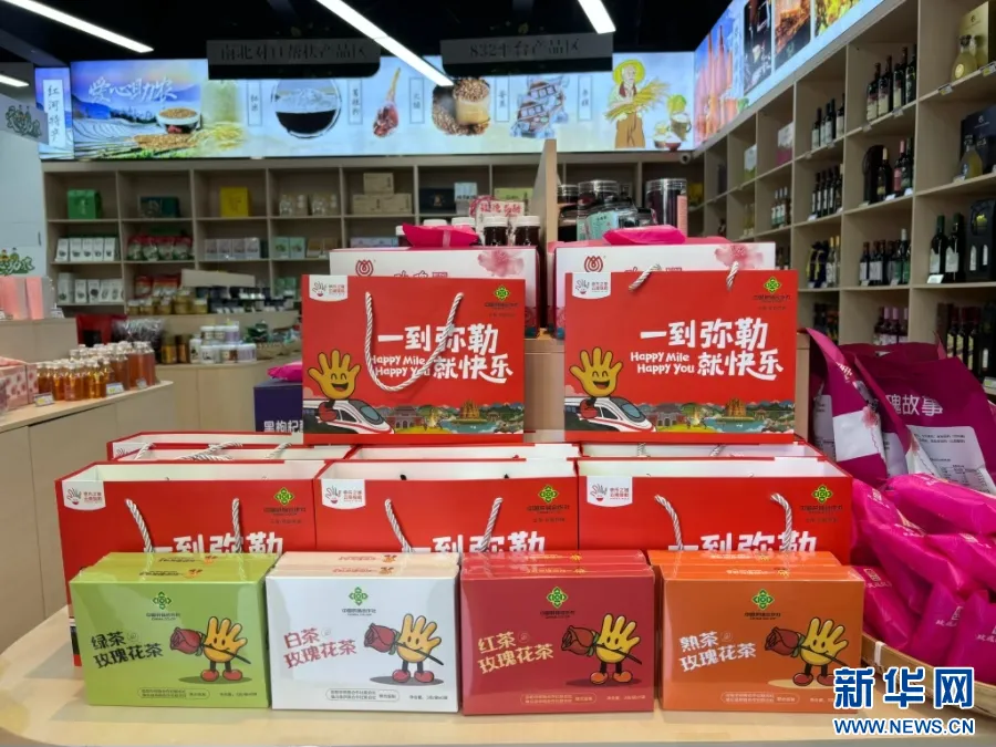 弥勒的超市中陈列的伴手礼产品(1月16日摄)。新华网发 张玛睿 摄