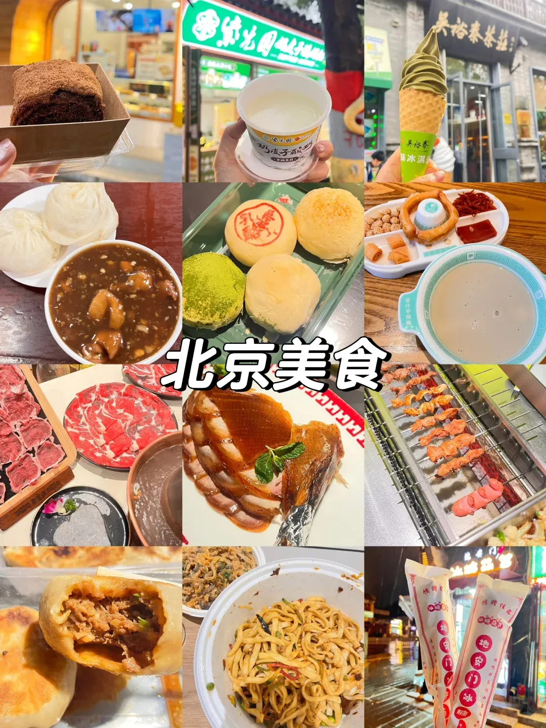 烤鸭:不必全挤“全聚德”。可尝试四季民福(景观好)、便宜坊(焖炉)、大董(创意)、紫光园(性价比高)。