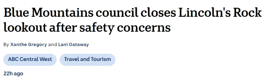 从本周四起,位于Wentworth Falls附近的Lincoln's Rock将暂时关闭三个月!