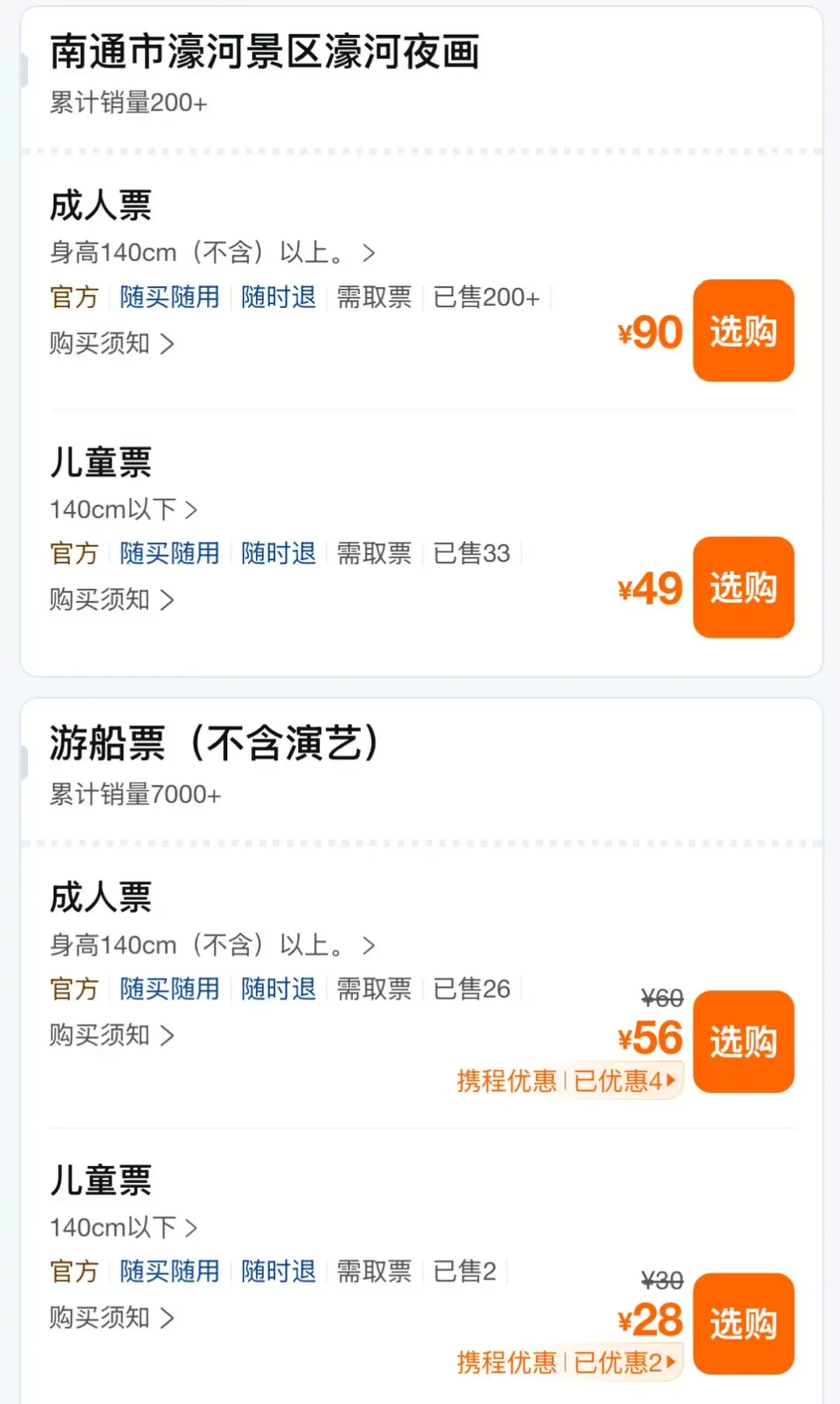 我们也查了下 上海黄浦江游船的价格 日常是90元/人,夜场为110元/人 也就是说 南通濠河游船的价格已接近一线城市水准