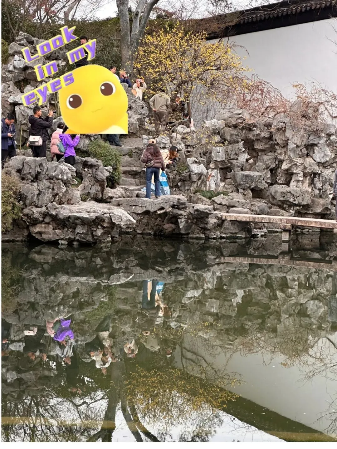 艺圃是今年第一次去,当时是为了寻茶,结果歪打正着看到了水榭前的那株蜡梅,很多年轻人打卡,梅花开在假山上,临水姿态很美,不过如果不是早起估计很难拍到满意的全株,从山顶到小桥上基本都是各式镜头对着,如果周末去,估计人更多。