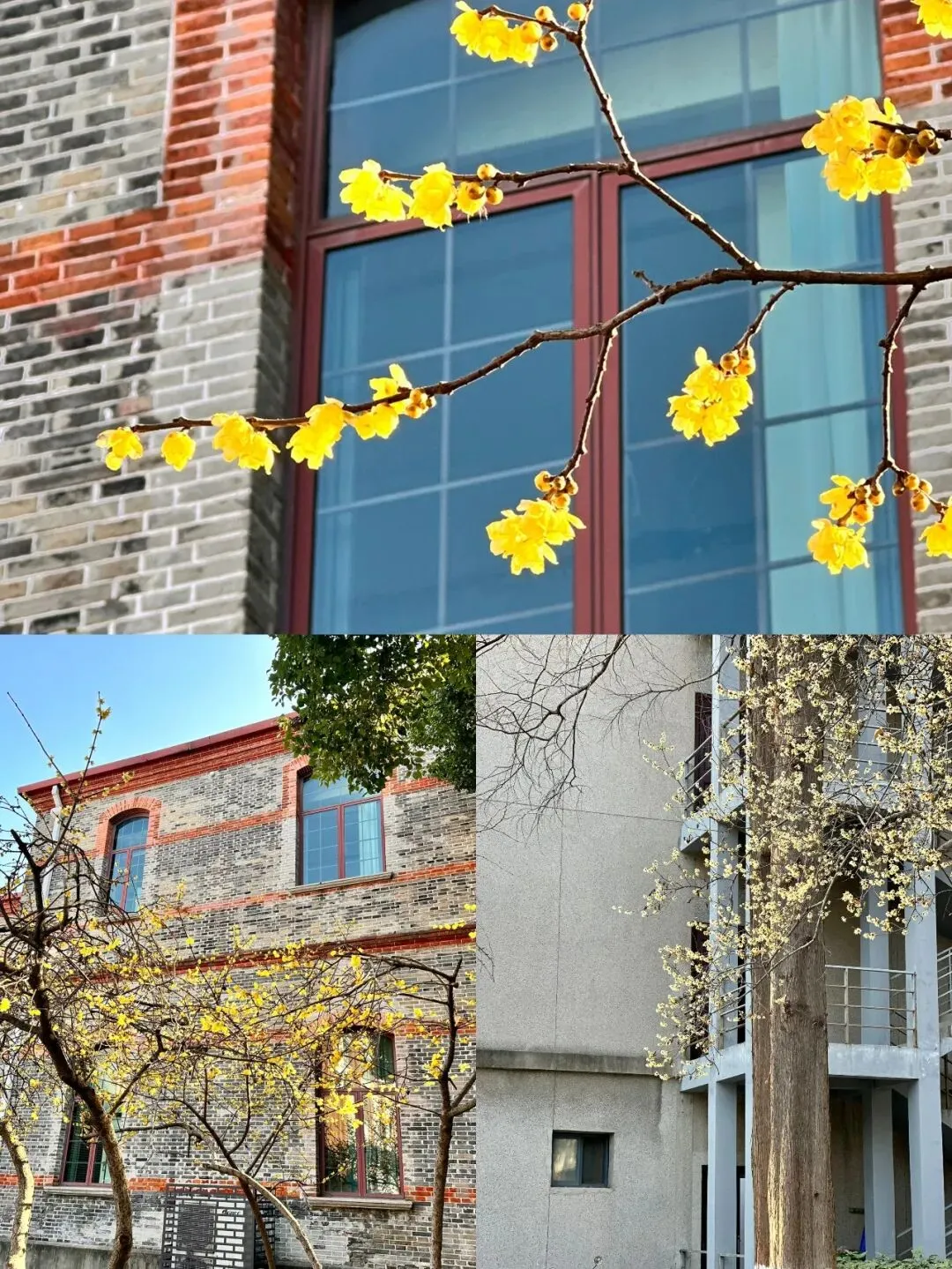 苏大天赐校区有很多株蜡梅,有些在学生宿舍楼旁,有些在操场边缘,有些在一个无人问津的角落,最热闹地是在教学楼旁的几棵。