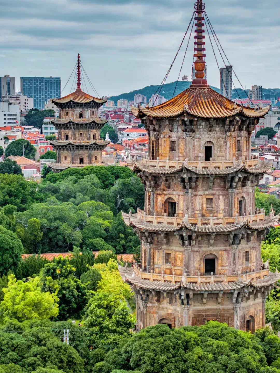 东西双塔是泉州的标志。我站在塔下仰头看,石雕的佛像、飞天、力士...密密麻麻却又井然有序。宋代的工匠是什么审美水平啊这是。