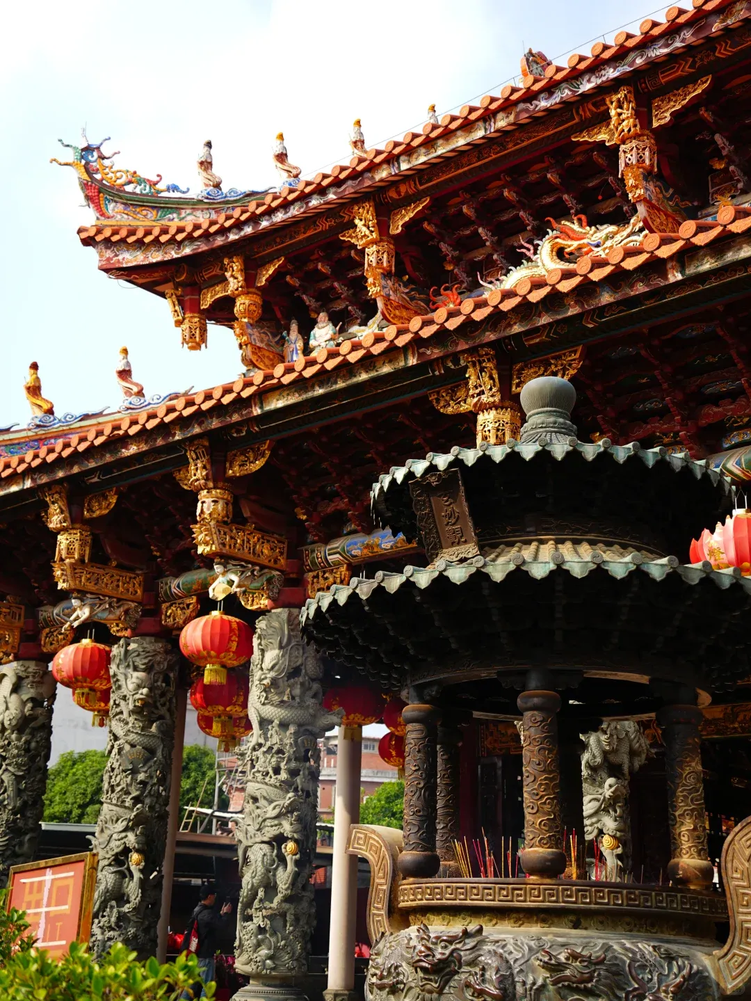 两边全是那种闽南特色的红砖古厝,骑楼底下开着各种小店。有卖香的、卖佛珠的,也有开了几十年的老药铺。中间夹杂着几家咖啡店和甜品铺——反差感拉满。