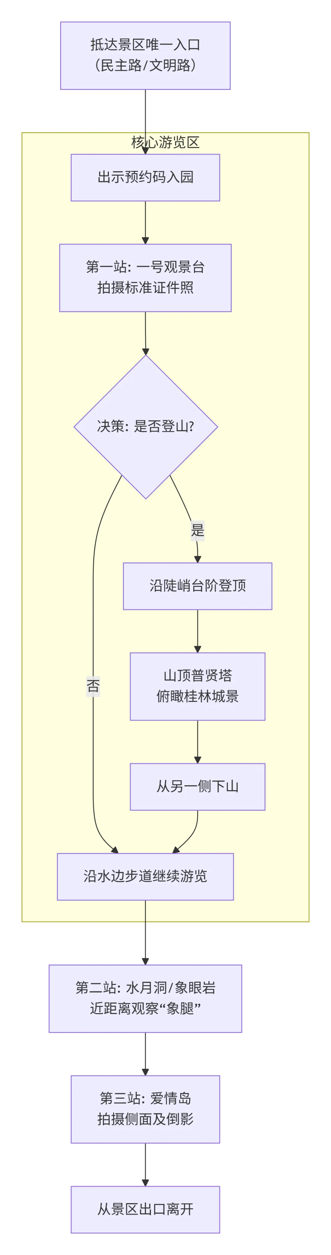 下图清晰地展示了象鼻山景区的核心游玩路线与打卡点,让你一目了然: