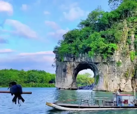 说明:象鼻山山顶有一座古老的佛塔(普贤塔),寓意“大象驮宝瓶”。登顶后可俯瞰桂林城市风貌和漓江。