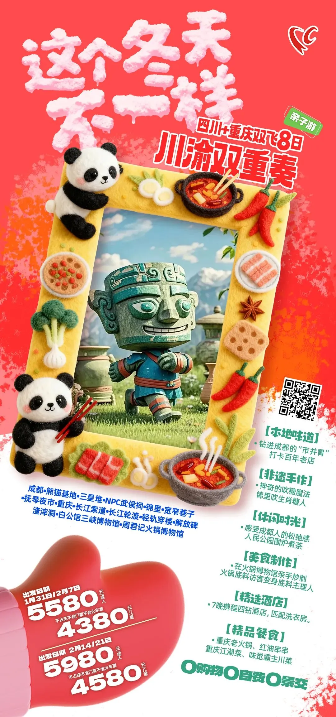 🔥 这个冬天不一样·川渝双重奏双飞8日游🔥