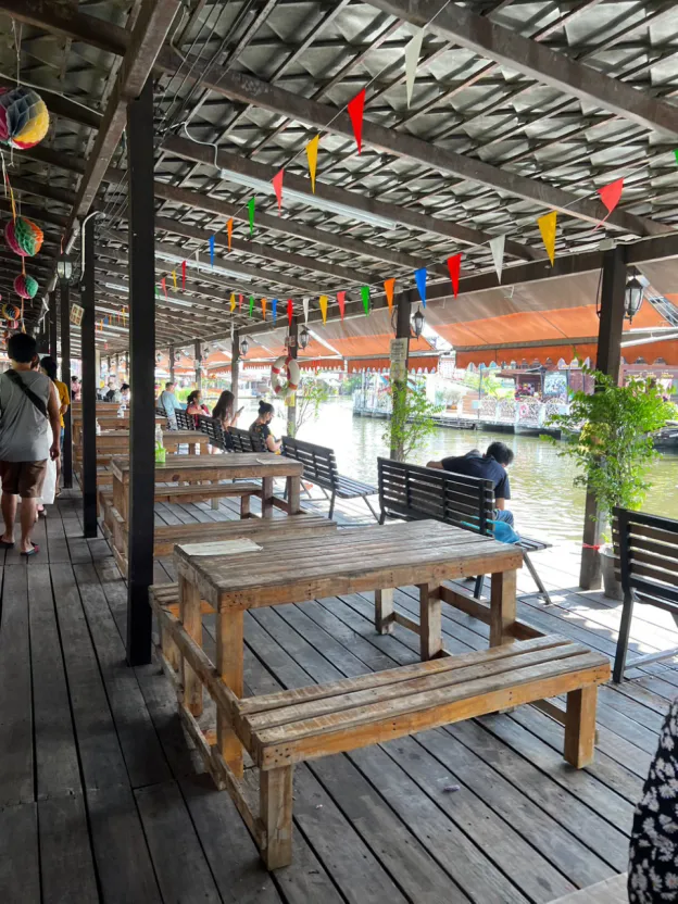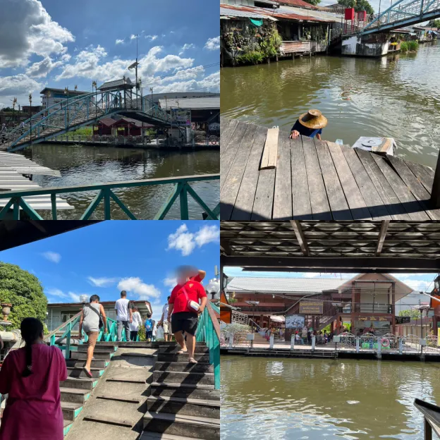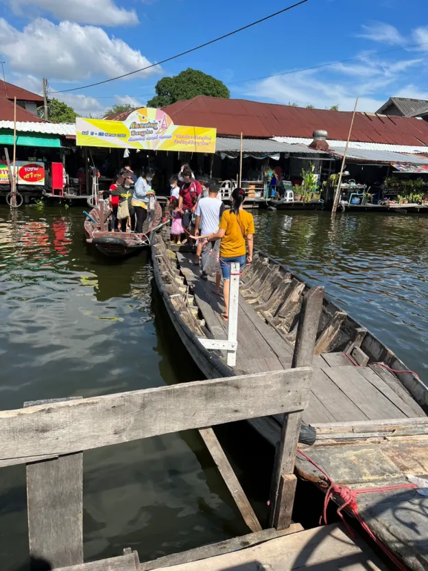 如果是从邦普里 Big C 方向过来,可以先走到 Big C 后方,再搭船过河,过河费用大约 2 泰铢,一下船就能直接进入古老水上市场。