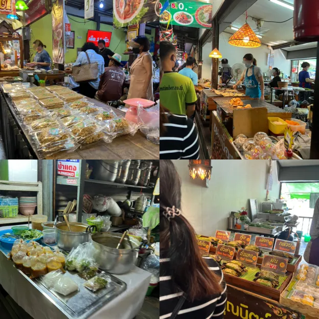 如果你是吃货一族,一定要来这里逛一圈!因为邦普里古老水上市场聚集了超多美食摊位,有各式泰式甜点、招牌小吃、粿条、米线(Kanom Jeen),还有琳琅满目的点心选择。