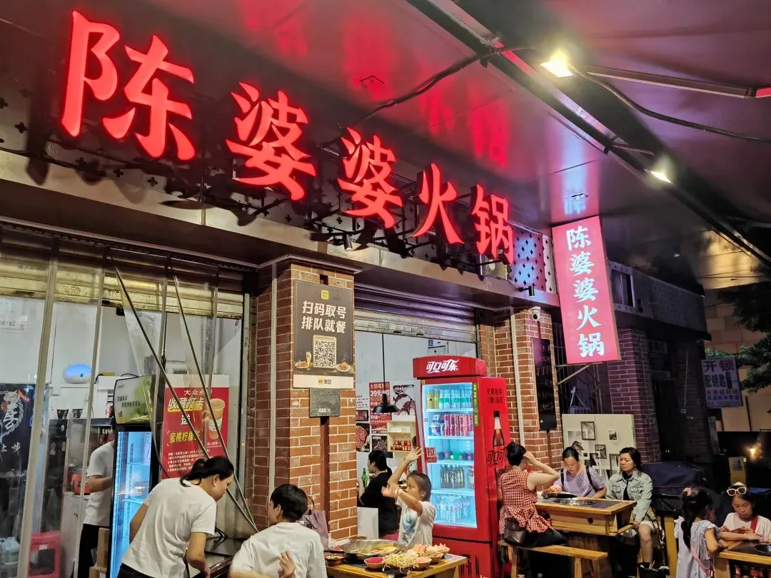 两个孩子太累不想去,在酒店看电视吃东西。我们四个大人看到巷子里的“陈婆婆火锅店”人很多,料定是地道火锅,入座、点鸳鸯锅和招牌菜,来重庆,深夜火锅“放毒”。啤酒干起来,火锅吃起来,日子美起来……