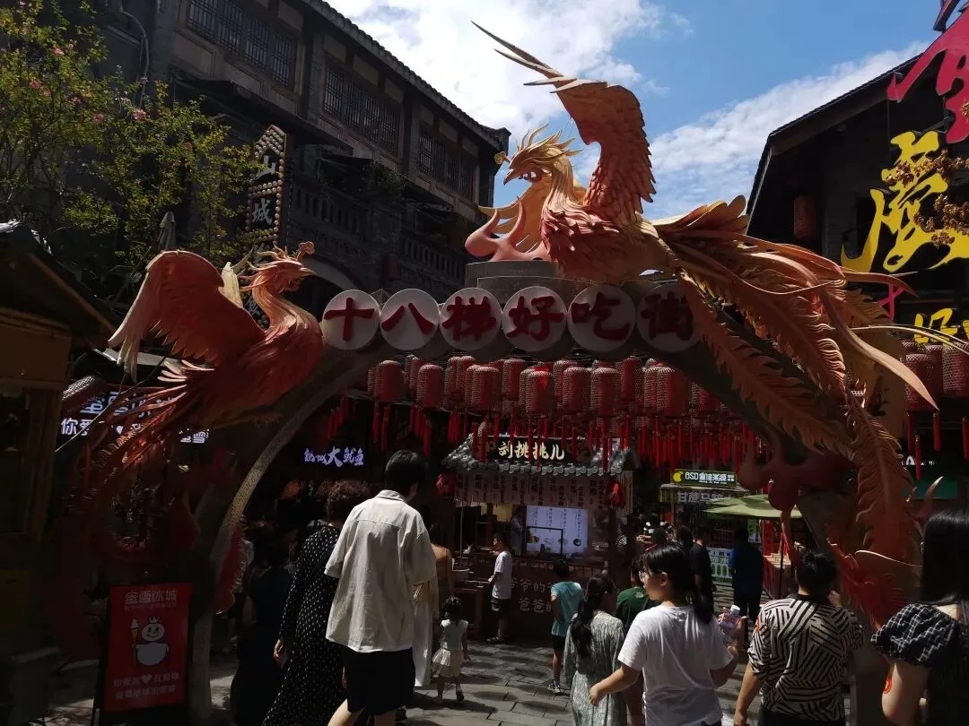 我们先打卡“十八梯”。景如其名,梯坎随山势而建,木结构。有“十八梯好吃街”和防空洞等,既展现了重庆的烟火,又致敬了英雄。