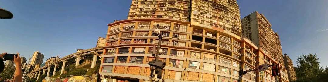快速到轻轨穿楼景点。轻轨穿楼而过时,整座城市仿佛在摇晃。这是轻轨和楼同时而建,最能体现山城的地势特征,房子依山而建,轻轨穿楼而过。设计者、建设者真是大智慧。