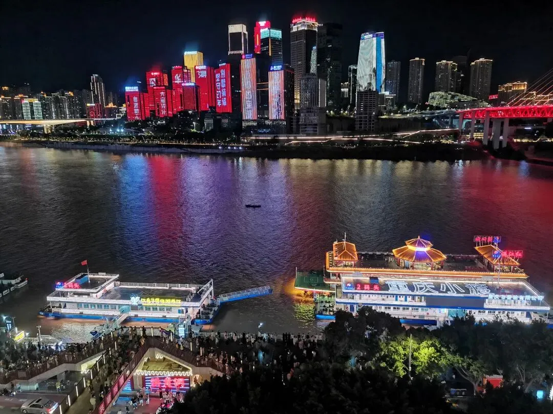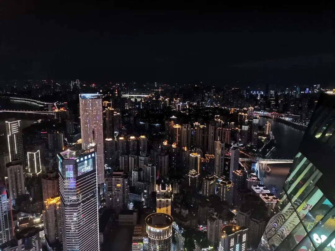 好兴奋。看到重庆的万家灯火,忍不住隔着车玻璃拍下,发个朋友圈:“威武,抵达重庆!万家灯火欢迎我们的到来!”
