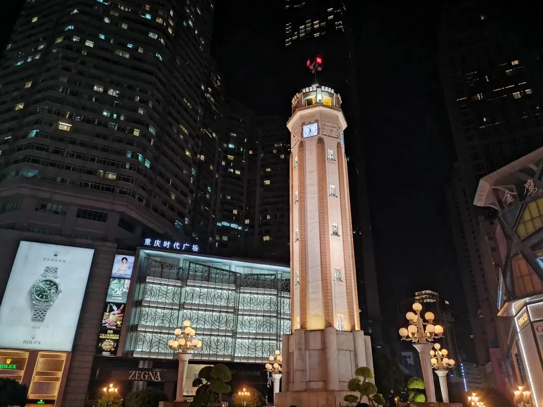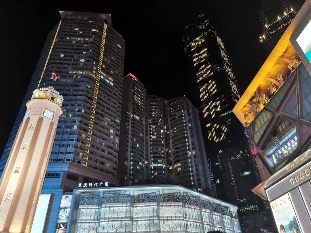 顺原路回解放碑,到重庆时代广场忍不住又拍照,这地标性建筑必须打卡。不愧是中心商圈,高楼林立,现代气息浓厚。
