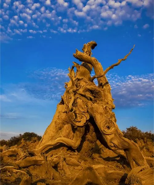 木垒胡杨林又不一样,这地方的胡杨不在沙漠里,在戈壁滩上,周围是光秃秃的石头和土,胡杨就这么扎在里头,看起来特别孤绝,但你仔细观察就会发现,这片林子虽然小,但树的姿态特别野,枝干扭曲得很夸张,像是在跟地面较劲,木垒的胡杨给你展示的不是繁盛,是生命力在极端条件下能扭曲成什么样子,它告诉你,活着这件事,有时候不需要太多条件,只需要一个理由。