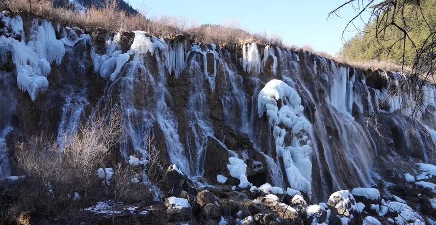 亚木沟这个地方会让你重新理解什么叫冬天的水,大部分瀑布到了冬天要么结冰要么水量变小,但亚木沟的水一直在流,而且流速不减,这是因为它的水源来自地下暗河,常年恒温,所以你能看到一个很奇怪的景象,瀑布周围的石头挂着冰凌,水还在哗哗地往下冲,这种冷暖交织的感觉在别的季节看不到。峡谷里的负氧离子浓度高,走在栈道上呼吸特别顺畅,不是那种刻意深呼吸才能感受到的新鲜,是你正常呼吸就觉得舒服。