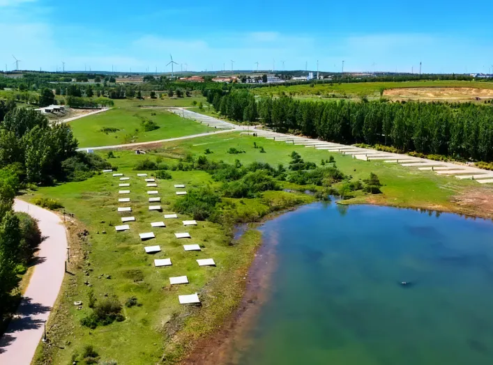 察哈尔牧场傍依张尚公路北侧,主要由生活区、旅游区、自然体验林地和休闲林地四个功能区组成,生活区位于牧场中央,这里空阔幽静,疏林间北美风格的别墅与山丘草地十分相谐,弥漫着令人心醉的田园情调,廊桥、小木桥、环碧 塘等无不撩拔着你的人文情怀。在生活区内,还专门设置了菜田和牧场体验区,让城市中的孩子也能体会一把亲自动手、劳作采摘的乐趣。