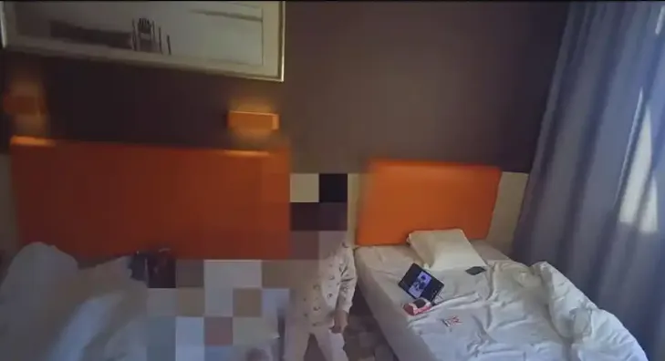 两名幼童被独自留在酒店。视频截图
