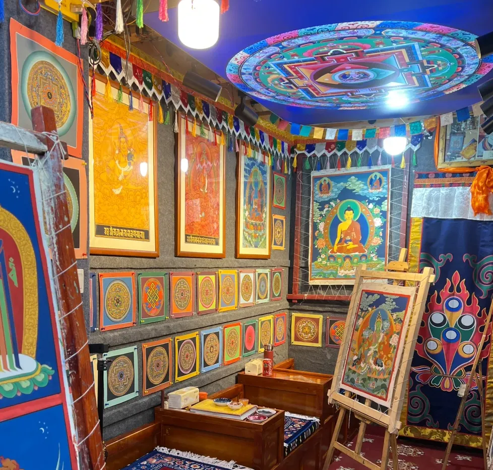 城里也有唐卡作坊,师傅画线很稳,矿物颜料一点点铺,金线一压就亮,想买先看工期和署名,别图便宜。