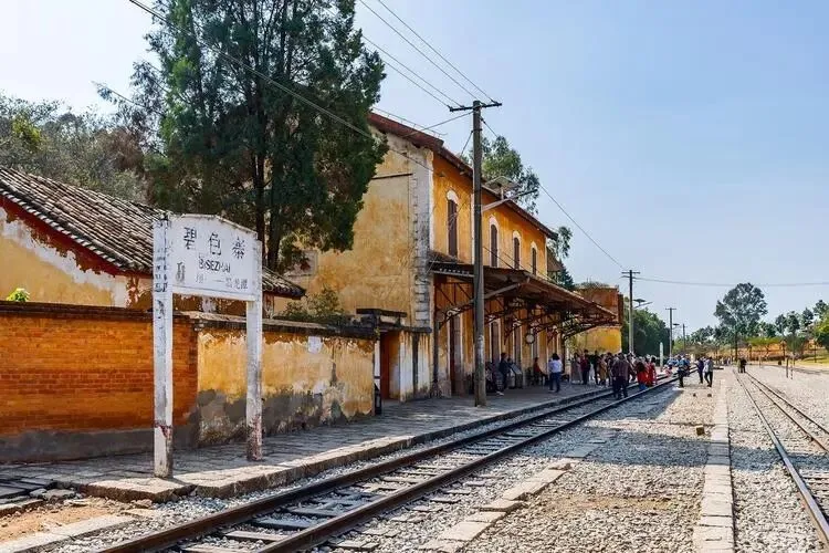 个旧的锡,靠这条线走天下,站房墙面老到脱皮,拍出来就有味道。