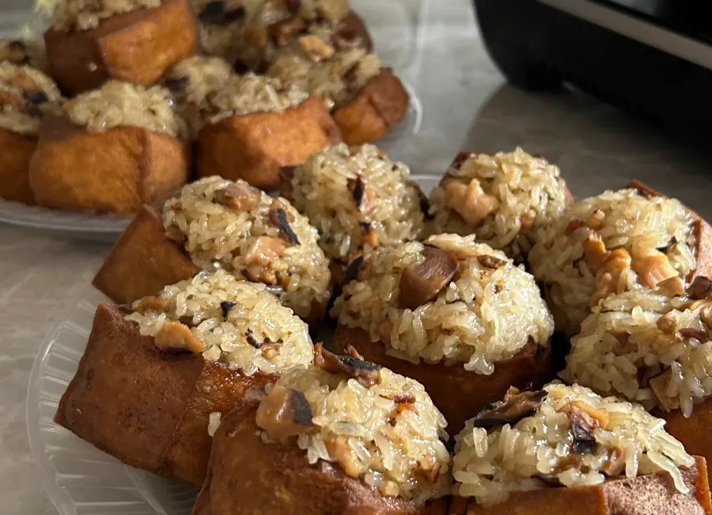 酿豆腐一盘先来,外脆里香,蘸点酱就下饭。