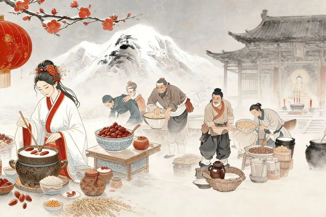 腊八节起源于中国古代的岁末祭祀仪式,人们在这一天用收获的谷物、果实等熬制腊八粥,以祭祀祖先和神灵,祈求丰收吉祥。后来融入佛教传说,纪念释迦牟尼成道之日,寺院施粥的传统进一步丰富了这一节日的内涵,最终演变为融合祭祀、佛教文化与民间饮食习俗的传统节日。