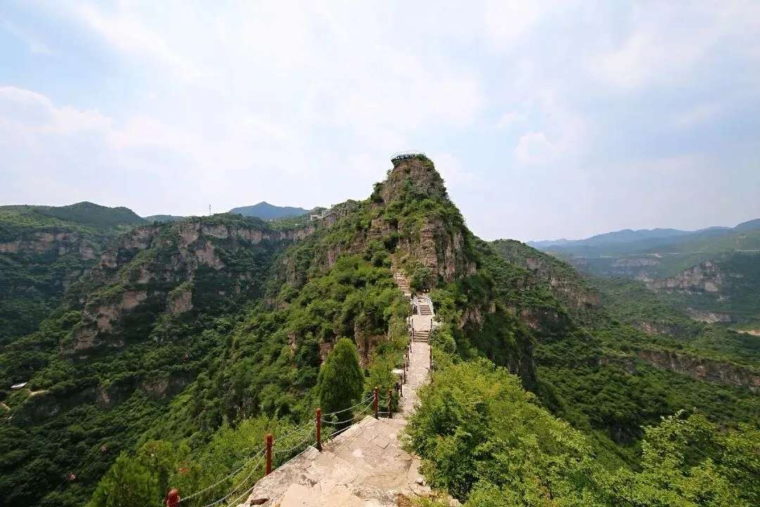 秀美的自然风光背后,通天峡更藏着深厚的历史文化底蕴,景区境内散落着虹梯关、烽火台、三通碑、观音堂、摩崖石刻等诸多历史遗址,千年古道的古朴风貌依旧留存,每一处遗迹都诉说着这片土地的过往。其中虹梯关作为山西“八大古关”之一,地处晋豫古商道的咽喉要道,地势险要,易守难攻,曾是古代商贸往来、军事防御的重要关隘,站在关隘旧址,仿佛仍能感受到昔日的繁华与肃穆;而坐落于虹梯关上的明惠大师塔,更是国之瑰宝,这座唐代单层方形石塔雕刻精致、比例匀称,尽显唐代建筑与雕刻艺术的精湛,2001年被列为第五批全国重点文物保护单位,成为研究我国唐代建筑技术和雕刻艺术极为珍贵的实物遗存。
