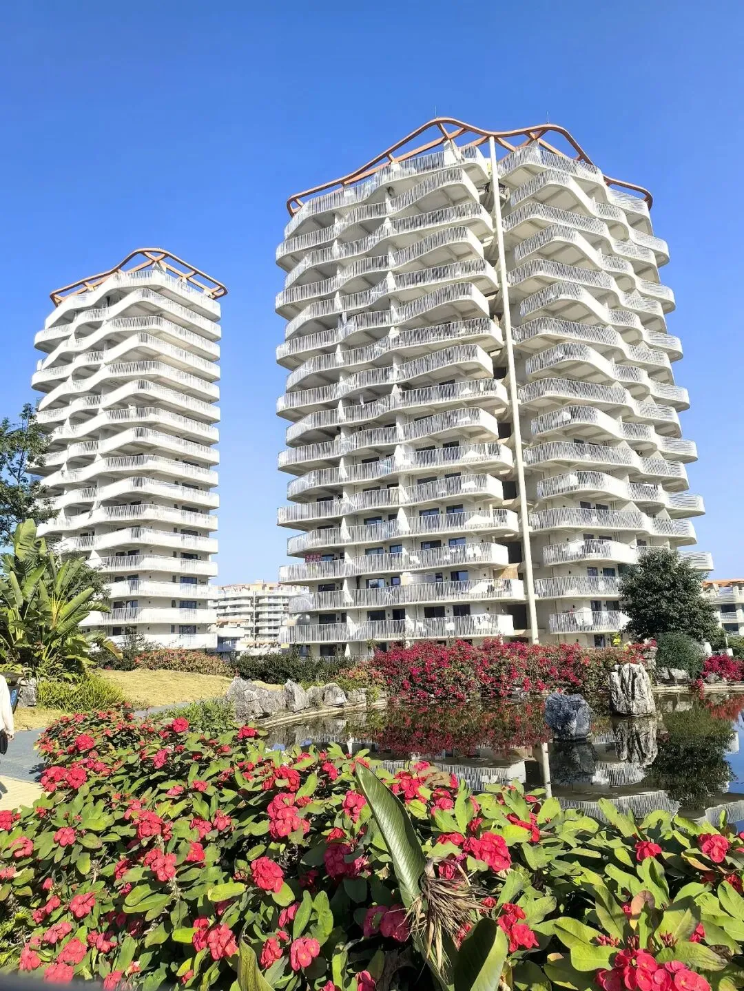 谷中还有不少白色建筑群,原为热销的商业楼盘,如今大多改建成了特色民宿,一百多元便能包吃包住住上一天,为前来康养休闲的游人,提供了别样的选择。在北纬26°的阳光秘境里,邂逅山海辽阔,遇见异域风情,才知世间美好,大抵不过这般模样。