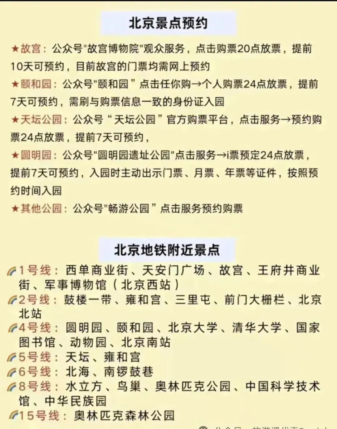 🚞火车站:北京站、北京西站、北京南站、北京北站等;其中北京站、北京南站、北京西站有高铁经停,首选这三个站下车 🚆市区交通:公车、地铁、滴滴,共享单车