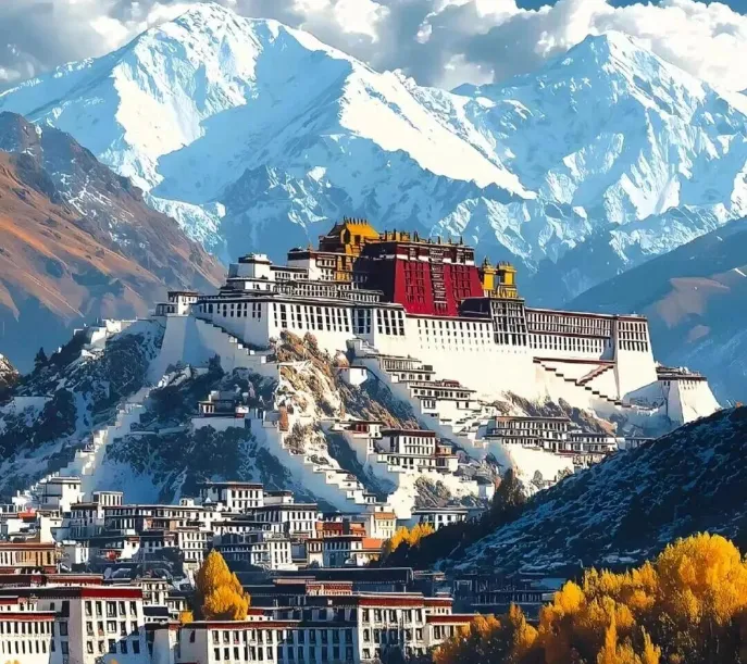十、西藏·布达拉宫 在广场上抬头看布达拉宫,比电视里看着高多了,也红白得更鲜艳。