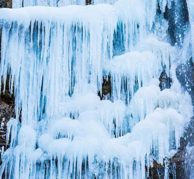 本溪水洞夏天去就是坐船看钟乳石,但2月份去本溪水洞,你看到的是水在零下温度里能玩出多少种形态,洞口的水流结成冰瀑,一层一层垂下来,阳光照上去泛着青蓝色的光,洞内的温度常年保持在十度左右,从外面零下二十度进去,那种温差带来的感觉不是暖和,是一种从冻僵到舒展的过程,你坐在船上看两边的钟乳石,水汽在灯光下凝成细细的冰晶,挂在石壁上,这个景象只有冬天能看到,因为只有在极寒天气里,水才会在这么短的时间内完成从液态到固态的转变,形成那种介于流动和凝固之间的美感。