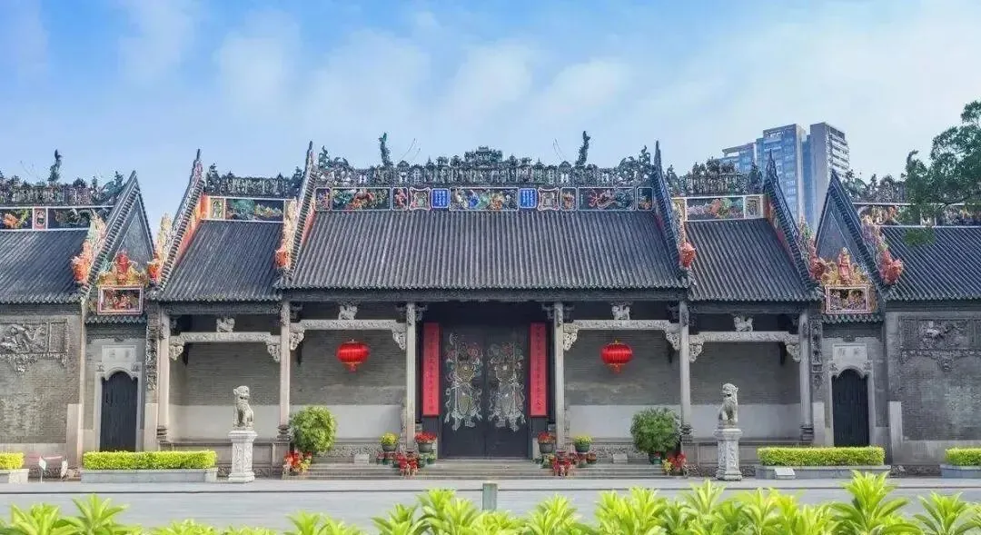 陈家祠,位于广州市中山七路。又称“陈氏书院”,始建于清光绪十四年(1888年),由清末广东省七十二县的陈姓联合建造,是广东省著名的宗祠建筑。陈家祠堂的建筑结构可分为三轴、三进,建筑面积8000平方米。祠堂每进之间既有庭院相隔,又利用廊、庑巧妙地联接起来,共有九座厅堂和六个院落。集岭南建筑工艺装饰之大成,展示了岭南建筑的“三雕三塑”即石雕、木雕、砖雕、陶塑、泥塑、灰塑以及铁铸工艺的高超技艺。