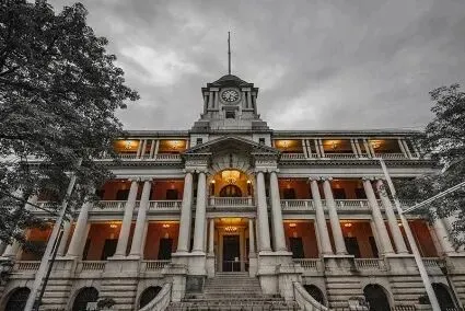 粤海关旧址,位于广州市沿江西路,俗称“大钟楼”。大楼坐北向南,大楼整体为砖石与钢筋混凝土混合结构,大部分建筑材料由国外进口,建筑面积4000余平方米,楼高30余米,地下室至钟楼共五层,平面呈内廊式布局,三面围廊。清咸丰十年(1860年),粤海奚税务司在现关址正式建立公署(外界称“洋关”)。民国三年(1914年),粤海关大楼工程在现址奠基。大楼由英国建筑师戴卫德·迪克仿照欧洲古典建筑形式设计,华昌工程公司承建。民国五年(1916年)5月,粤海关大楼工程竣工。