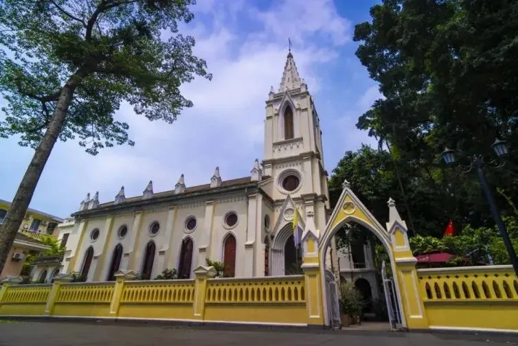 广州沙面建筑群,位于广州市珠江岔口白鹅潭畔。有哥特式、维多利亚式、折中主义、新古典主义等风格。