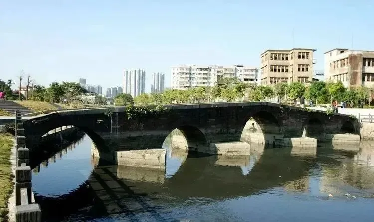 五眼桥原名通福桥,坐落石围塘秀水涌上,始建于明代万历四十年(公元1612年),全长42.8米,宽2.8米,桥身桥面为红砂岩打造,桥栏及桥孔边缘用花岗岩镶嵌,桥面坡度平缓。清康熙《南海县志》载:“桥为省佛通衢,西水渡头,十八乡船往来均泊此。