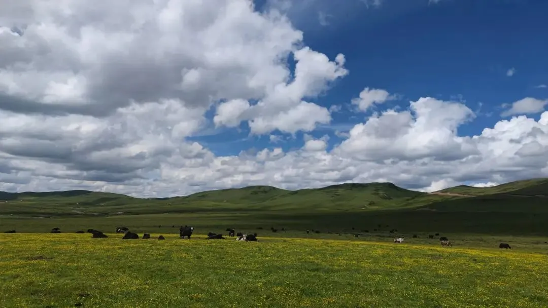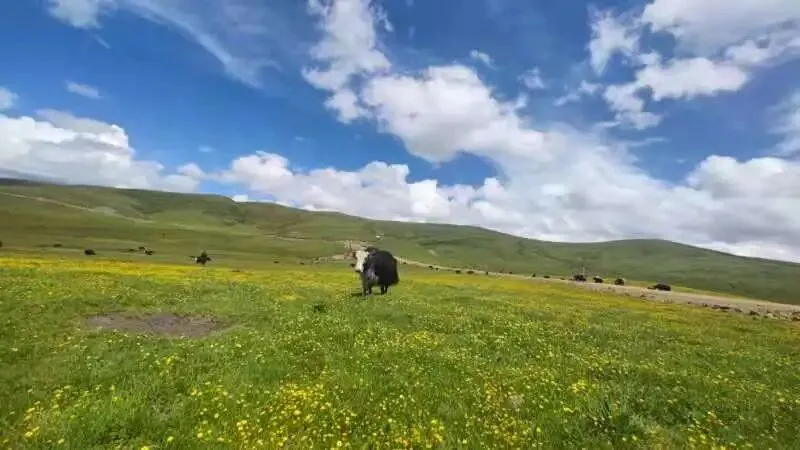 这里是位于四川省阿坝藏族羌族自治州松潘县镰刀坝草原,基本上6-9月去了都是这样的景色,这里海拔3800左右,会有轻度的高反,只要不跑不跳都没啥问题,或者也可以备上一瓶氧气,这里可以体验骑马,技术好的可以策马奔腾!