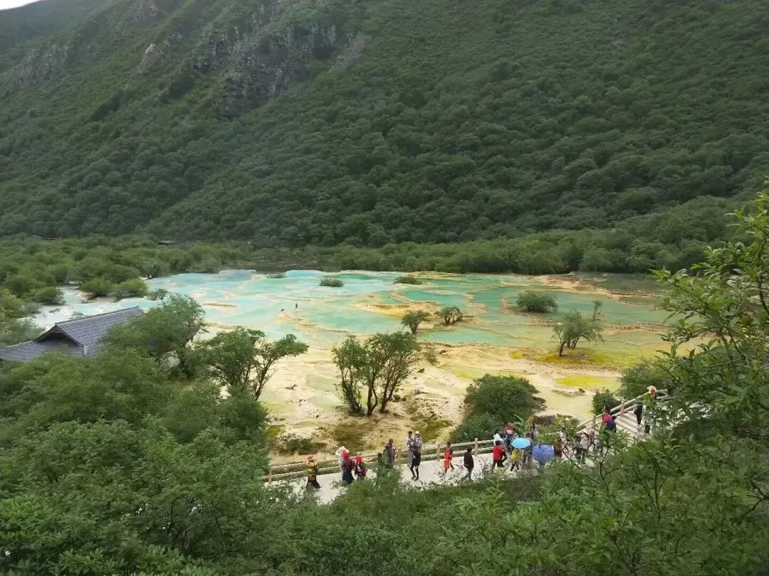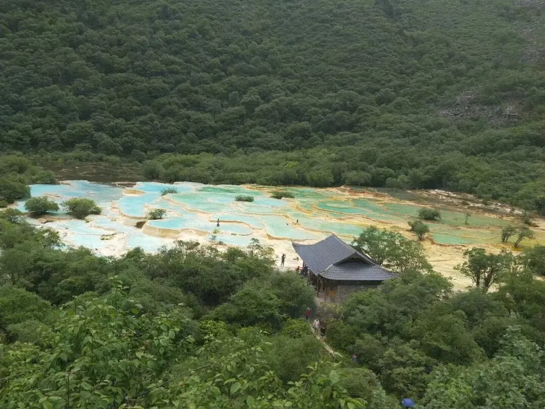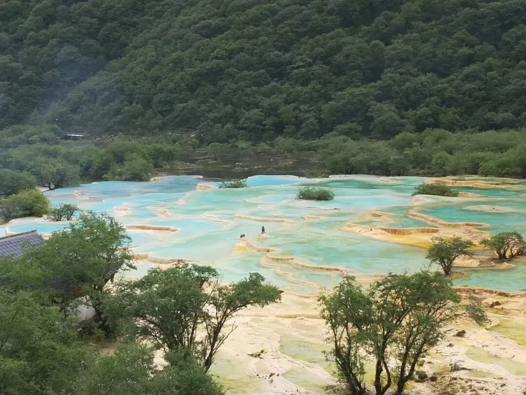 这里是位于四川省阿坝藏族羌族自治州松潘县黄龙景区,这里海拔3500左右,拍摄时天气不好,没有拍出来五彩池多彩的颜色!感兴趣的可以去网上看看,五彩池确实还是比较惊艳的!