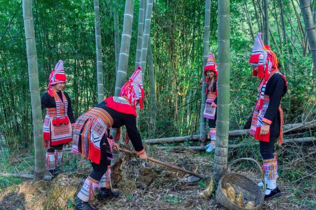 寨南片区被绵延的翠竹林海环抱,冬日里更显苍翠欲滴,是体验“竹林探宝”的绝佳去处。游客跟随当地农人深入竹海,学习辨别冬笋踪迹,亲手挖掘鲜嫩冬笋,感受收获的喜悦。毗邻的茶园终年云雾缭绕,以山泉滋养的石径茶在冬日沉淀出独特风味,游客不仅可了解制茶工艺,还能品鉴荣获省级奖项的香茗。夜幕降临时,热情的瑶族篝火晚会将点燃冬日寒意,“阿贵”“沙腰妹”的歌舞表演与共饮瑶酒的欢畅,让游客沉浸于浓郁的民族风情中。这片集挖笋品茶、民俗体验于一体的山野乐园,与周边新寨民宿群、千年瑶寨等景点相映成趣,是冬日里感受自然馈赠与民族文化魅力的理想之地。