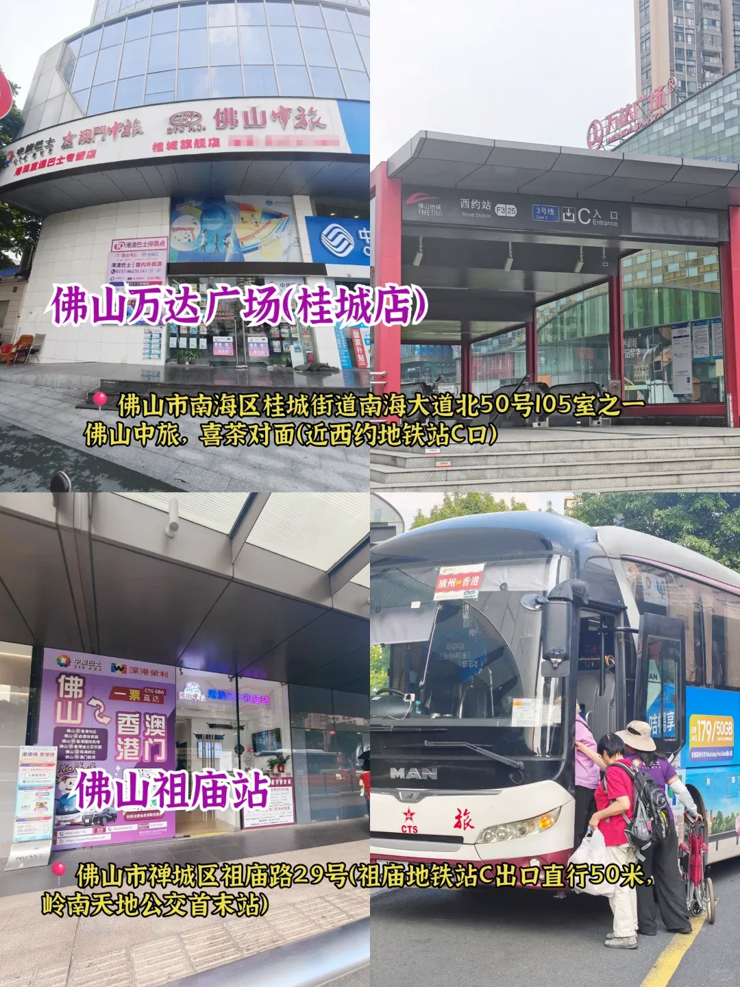 香港宝子可以乘坐中旅巴士,从香港市区十几个站点上车,到【佛山万达广场站】下车,返程也可以到【佛山祖庙站】上车回港,大包小包放行李舱,舒舒服服回香港~