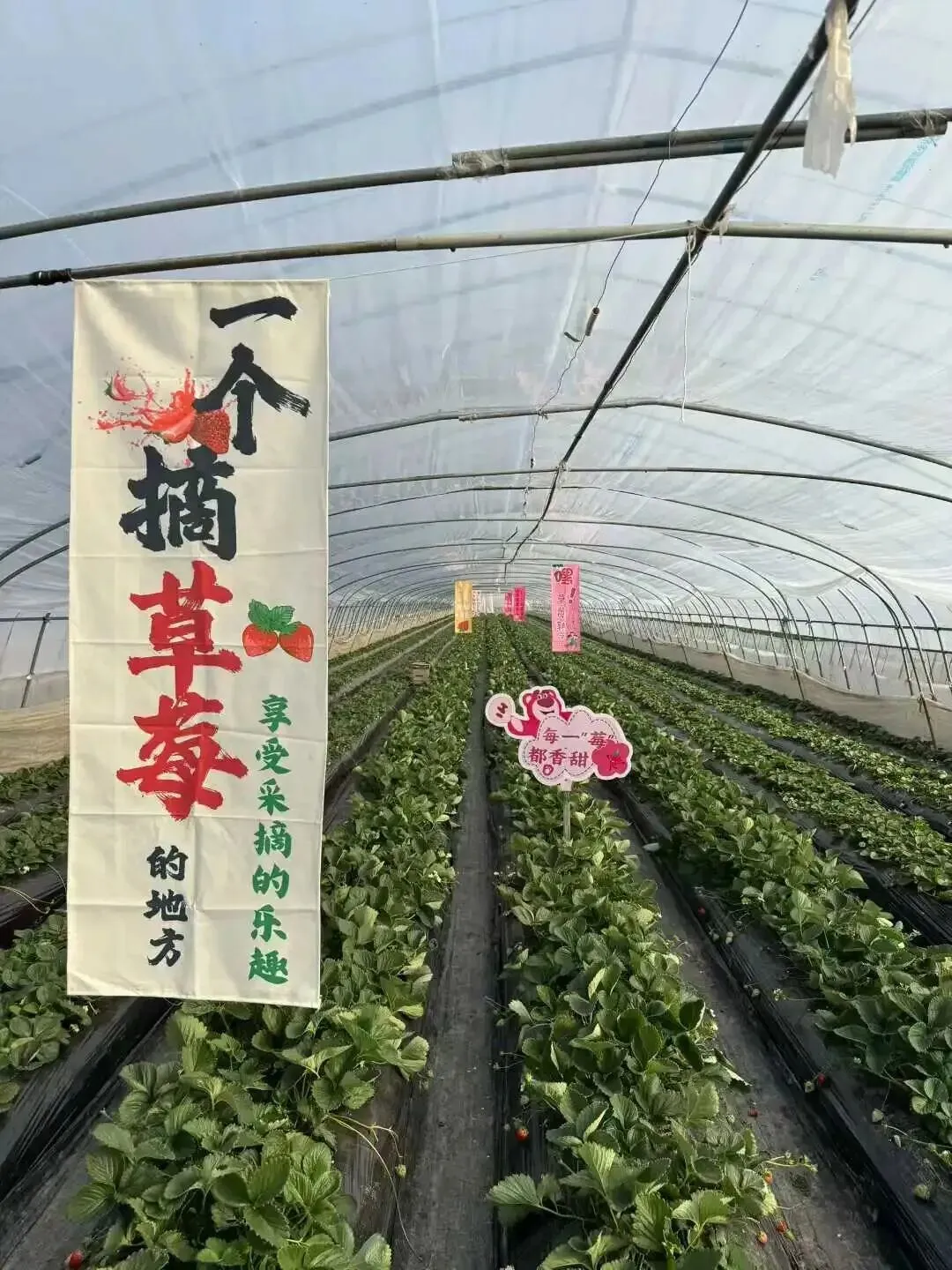 午后直奔景区内农业体验区,采摘“绿色食品认证”草莓,红颜品种果肉饱满、甜香浓郁,大棚干净整洁,带娃采摘也放心!