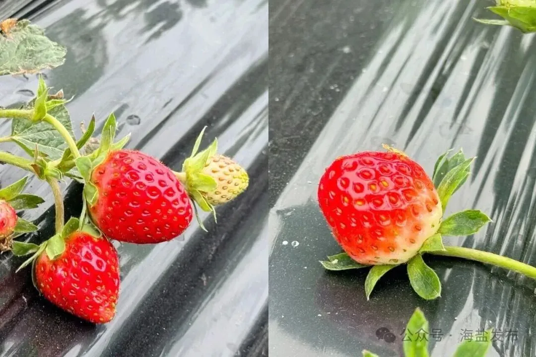 自驾前往秦山街道秦欣家庭农场,滨海气候滋养的草莓自带清润甜香,星星点点、红艳欲滴的草莓被工人们轻轻摘下,放入篮中。绿叶间还挂着白色的小花、青色的幼果,长势喜人。田垄间,清甜的香气与丰收的喜悦一同弥漫开来。