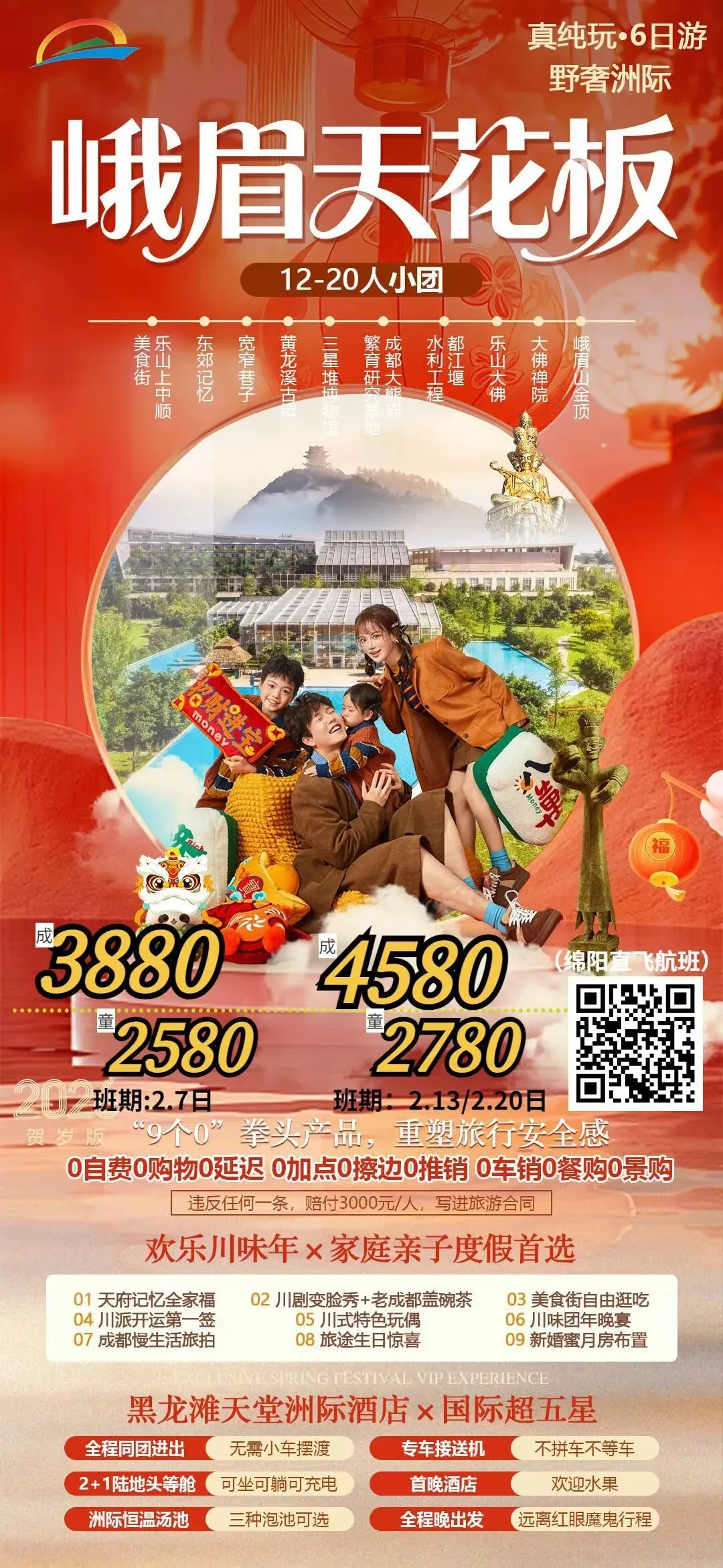 🌿【禅悦九寨归心峨乐 6 日游】🌿 春节版双飞一动6日游