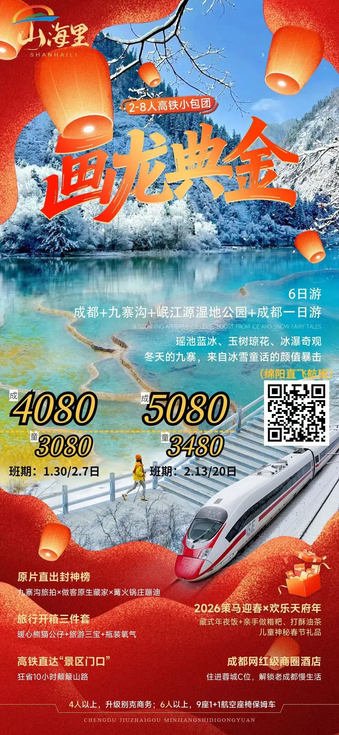 ✅ 全景IP打卡: 🌊 九寨沟:翠海叠瀑,人间瑶池 🌈 黄龙:钙化彩池,云端仙境