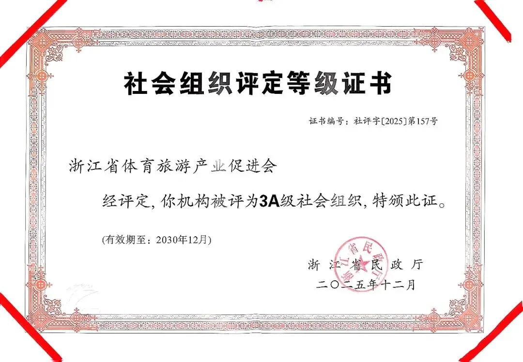 在浙江省体育局与浙江省民政厅的指导与支持下,浙江省体育旅游产业促进会(以下简称“促进会”)近期获评3A级社会组织。这一评定结果是对促进会自成立以来在推动体育与旅游产业深度融合、服务行业发展方面所作出工作的认可。
