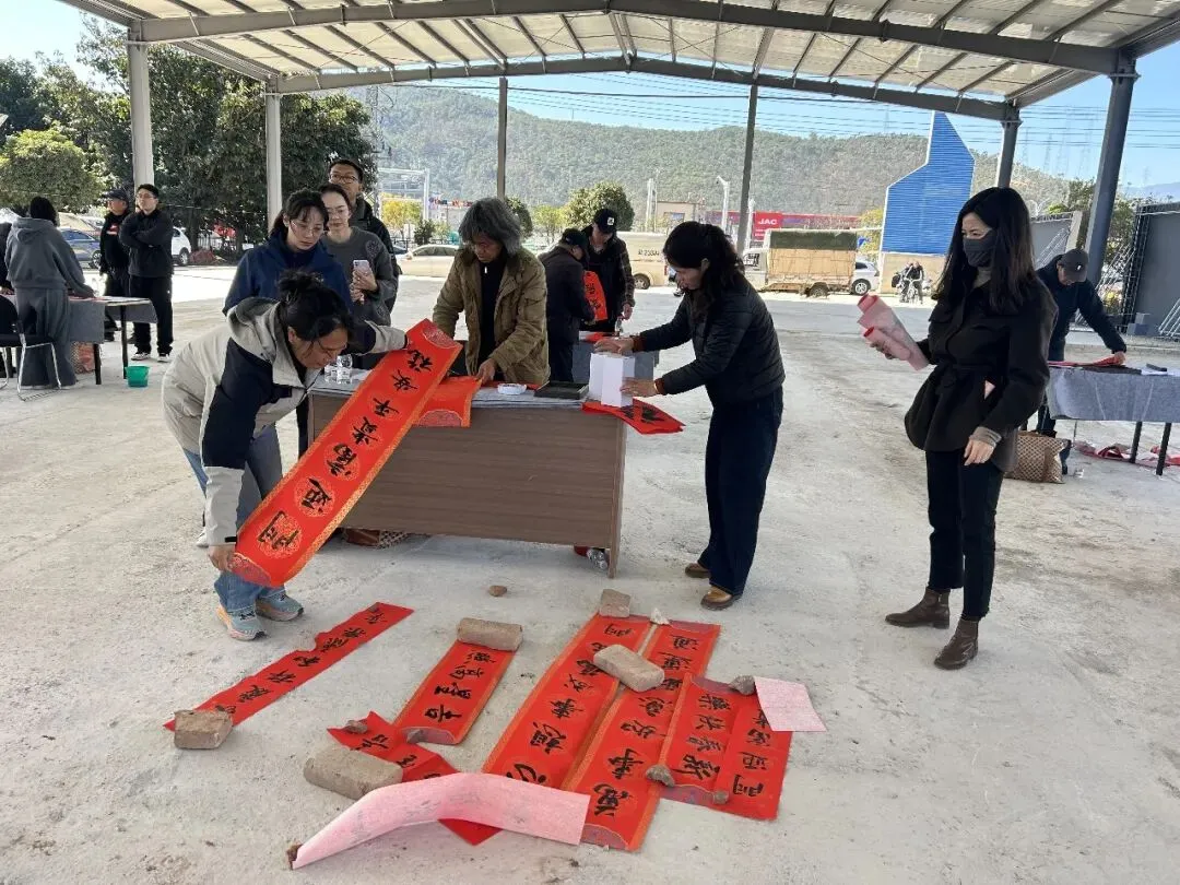 此次活动除文艺演出外,还同步设置政策咨询、新春送福等惠民服务环节,让文化惠民与便民服务同频共振。活动现场暖意融融,大理市人社局、医保局及经开区税务分局等单位工作人员现场为企业职工和群众提供社保、医保、税收等民生政策精准解读;书法爱好者挥毫泼墨、书写春联福字,将新春美好祝福凝于笔端、送到群众手中,让大家在欢乐祥和的氛围中喜迎新春。