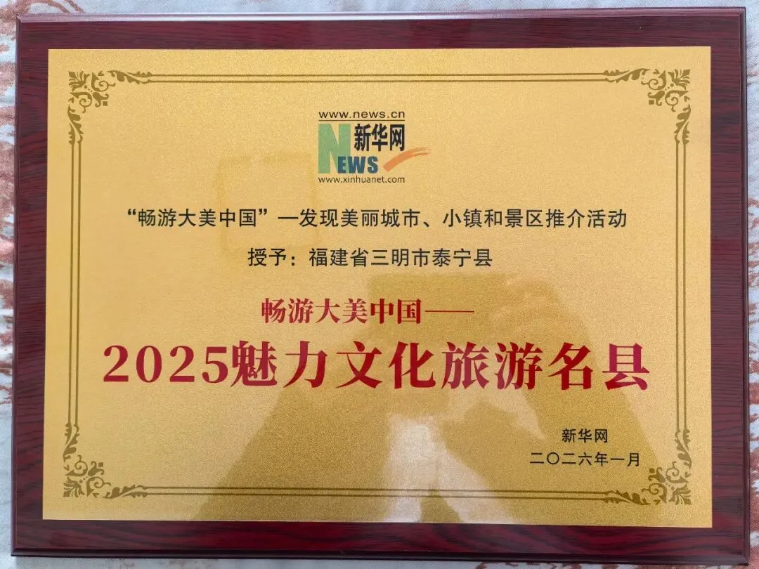 1月25日,由新华网主办的“畅游大美中国——发现美丽城市、小镇和景区推介活动”在北京隆重召开。活动以发掘文旅特色、引领行业发展为核心,系统梳理全国优质文旅资源,为文旅融合高质量发展搭建交流平台。在此次推介活动中,泰宁县凭借独特的丹霞山水、深厚的文化底蕴与卓越的旅游品质,成功斩获畅游大美中国——“2025魅力文化旅游名县”称号,为泰宁文旅再添一张耀眼的金色名片!