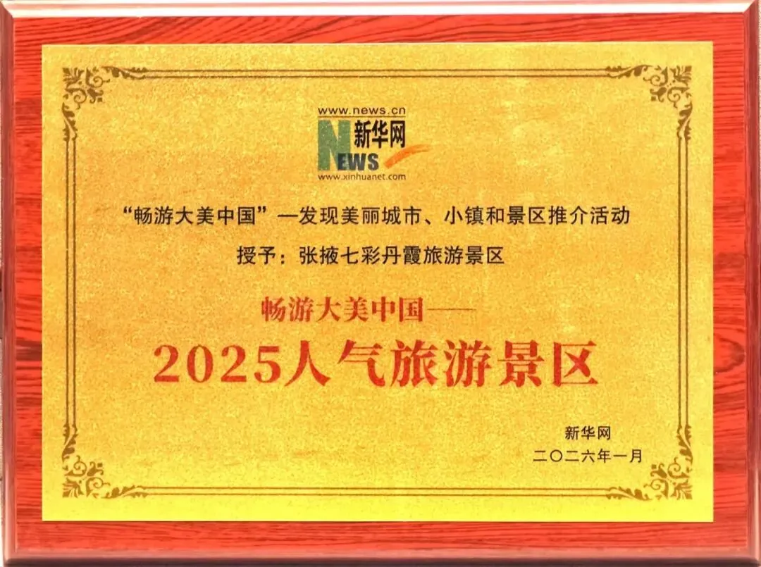 1月25日,由新华网主办的“畅游大美中国”——发现美丽城市、小镇和景区推介活动在北京揭晓荣誉榜单,张掖七彩丹霞景区凭借卓越的品牌影响力与创新实践成果,一举斩获“2025人气旅游景区”“2025最佳低空旅游目的地”两项殊荣。