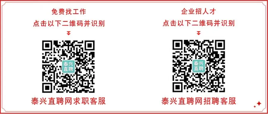 泰兴直聘网微信公众号发布的所有招聘信息均已核实过,求职者在浏览招聘信息,与商家联系沟通的过程中,如遇到商家要求提前缴纳费用以及交押金的情况,一定要谨慎考虑,以免上当受骗!!!